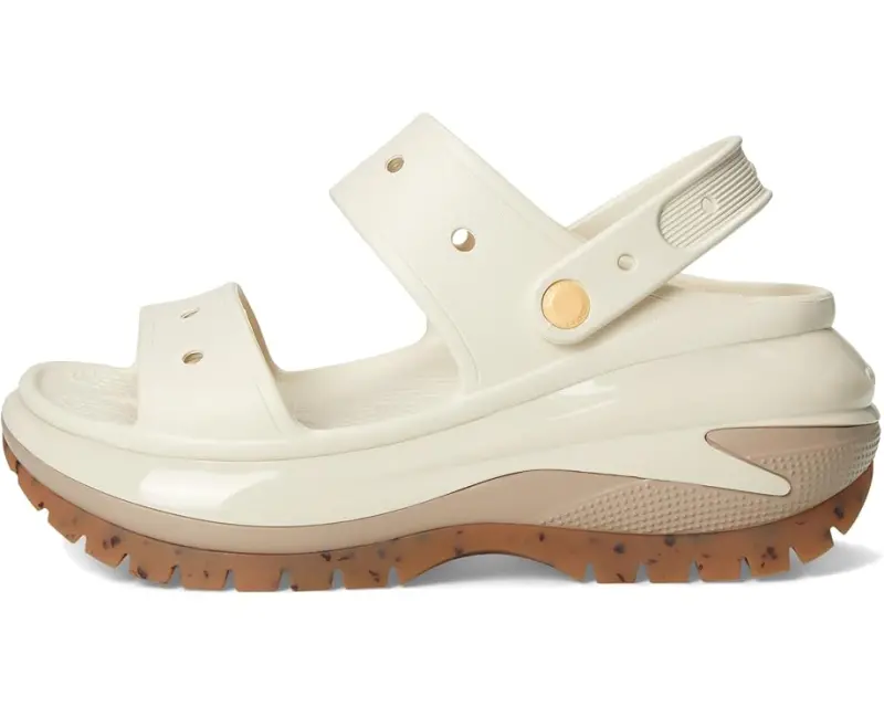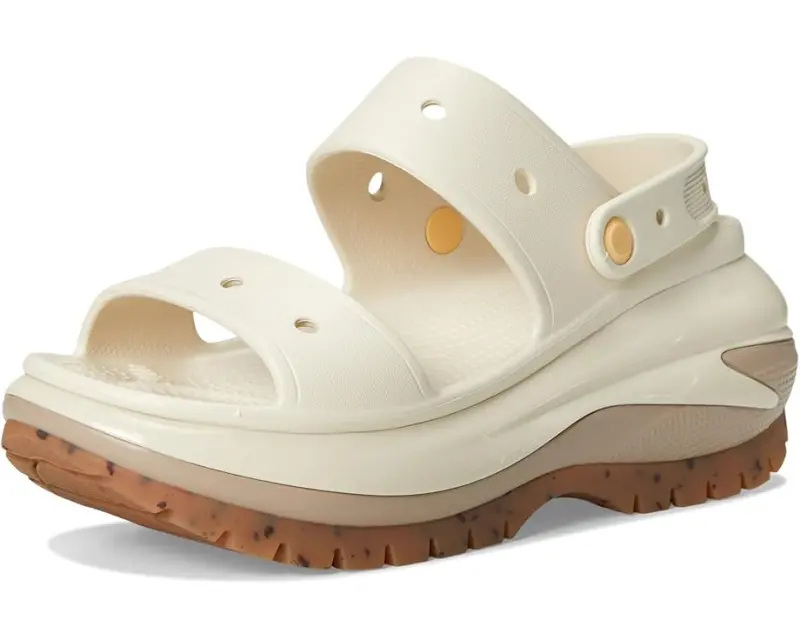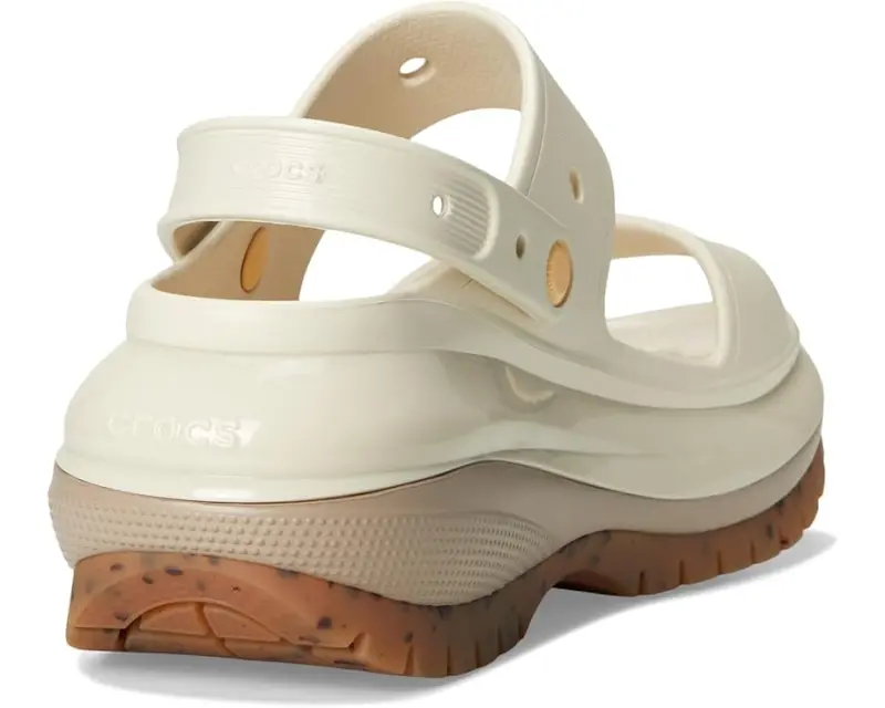 The look and feel of the Classic Mega Crush Clog is now available in sandal form. Introducing the Classic Mega Crush Sandal, featuring an enhanced rubber tread, updated detailing around the outsole and a platform ready to take any outfit to the next level. A two-strap upper and secure backstrap help ensure a secure fit, while boasting holes for personalization with Jibbitz™. Are you ready for your new crush?
