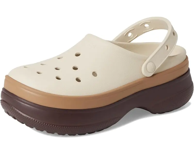 Rise and shine wearing Crocs™ Classic Stacked Clogs Platform are where bold fashion meets legendary comfort. Designed with a sleek EVA upper and a tri-tone banded platform outsole, these unlined slip-ons give your look an instant lift, literally. Lightweight yet eye-catching, they're the perfect pair for styling up everything from streetwear staples to cozy loungewear. The Croslite™ footbed cushions every step, while pivoting heel straps offer a snug, secure fit.