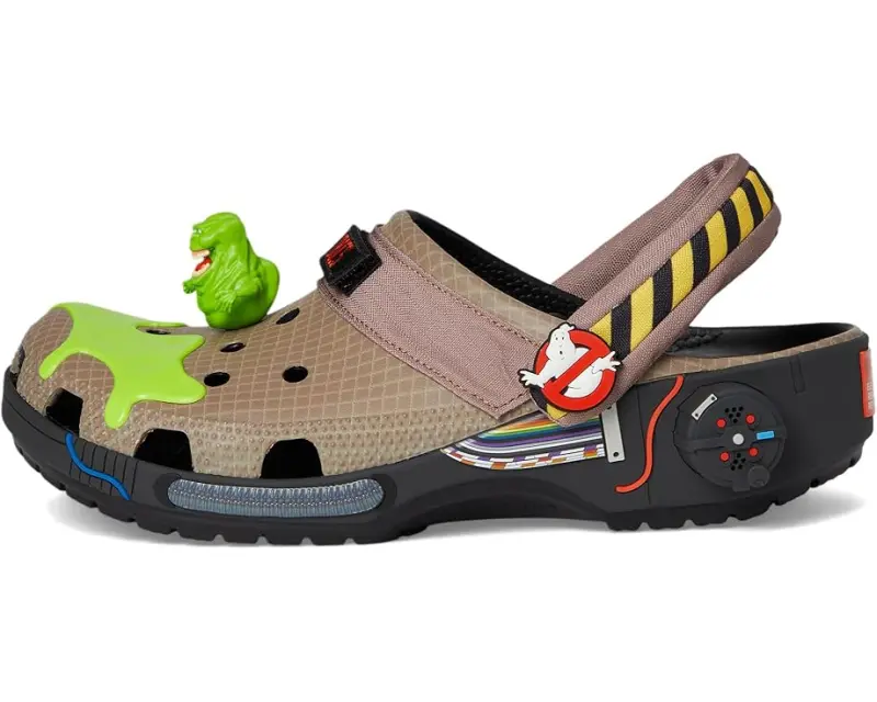 Gear up for your next adventure choosing the Crocs™ Ghostbusters Classic Clogs, inspired by the iconic Ghostbusters uniform. Featuring character name patches, proton pack-style soles, and glowing slime on the toes, these clogs bring the ghost-hunting spirit to life. The 3D Slimer JIBBITZ™ adds a playful touch, making every step a nod to paranormal fun. Lightweight, water-friendly, and fitted with pivoting heel straps for a secure fit, these clogs deliver Iconic Crocs Comfort so you can hunt ghosts in style and ease.